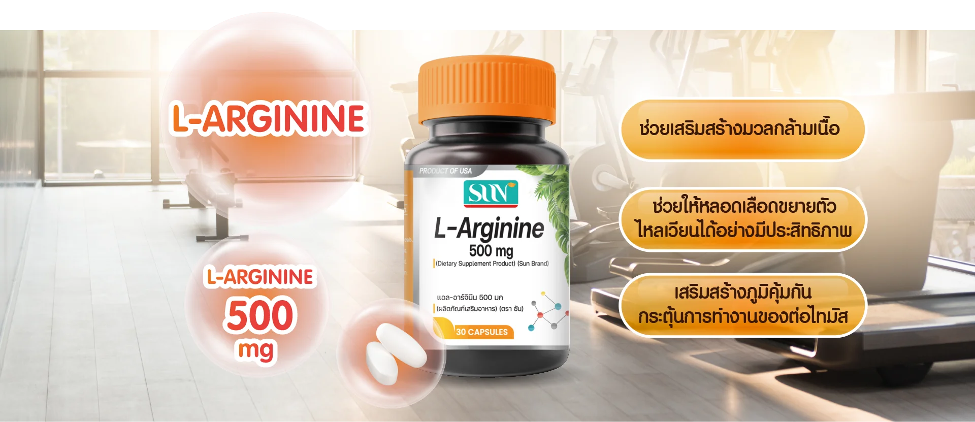ผลิตภัณฑ์เสริมอาหาร ซัน แอล-อาร์จินีน 500 มก. จาก New life balance (30 Capsules) มีอย.