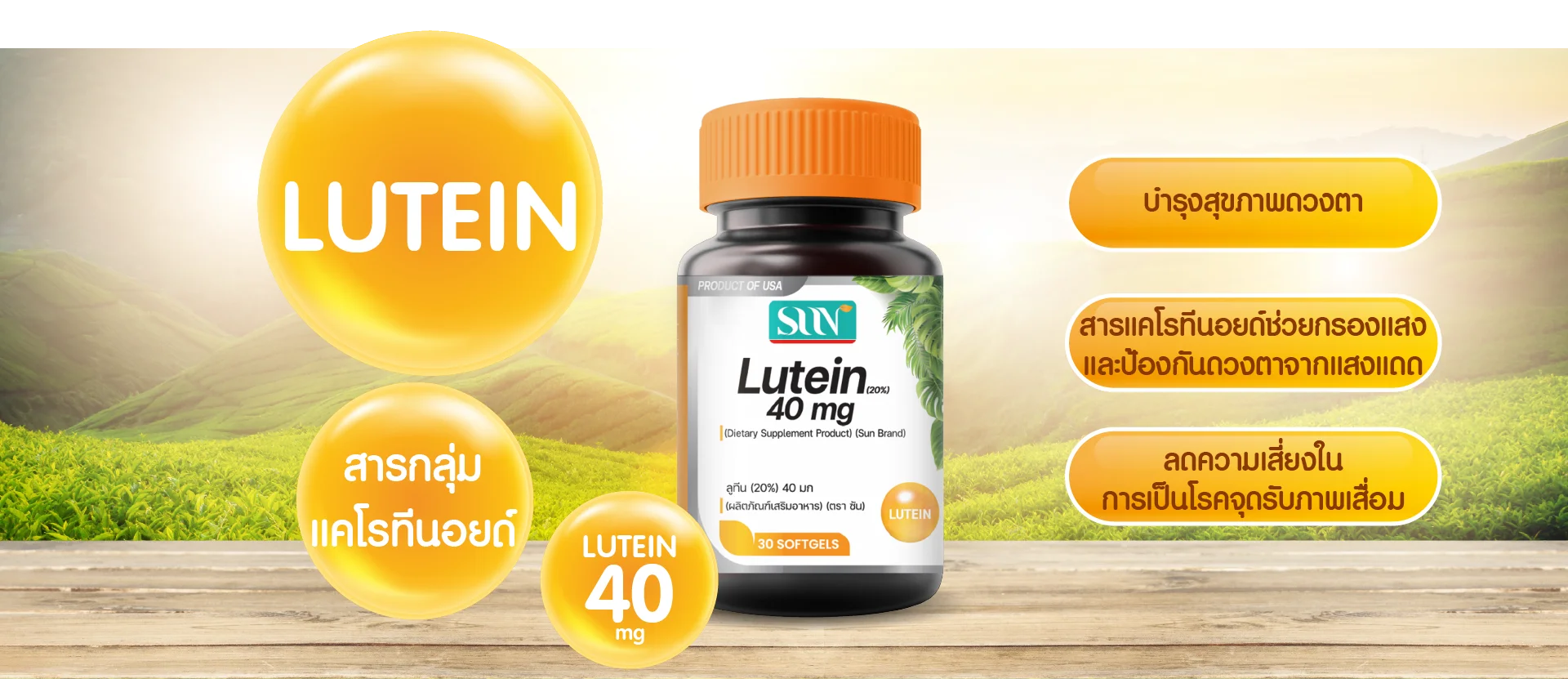 ผลิตภัณฑ์เสริมอาหาร ซัน ลูทีน 40 มก. จาก New life balance (30 Tablets) มีอย.